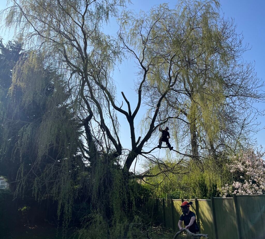 Crown Lifting: This involves the removal of a tree’s lower branches to raise the canopy, creating more space underneath for people, vehicles, or buildings. It also improves safety, lets more light into your garden, and helps keep the tree healthy and neat.